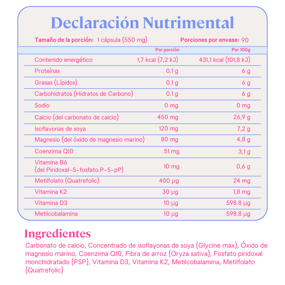 • Isoflavonas vegetales de soya, reconocidas por su papel en el bienestar femenino durante cambios hormonales naturales