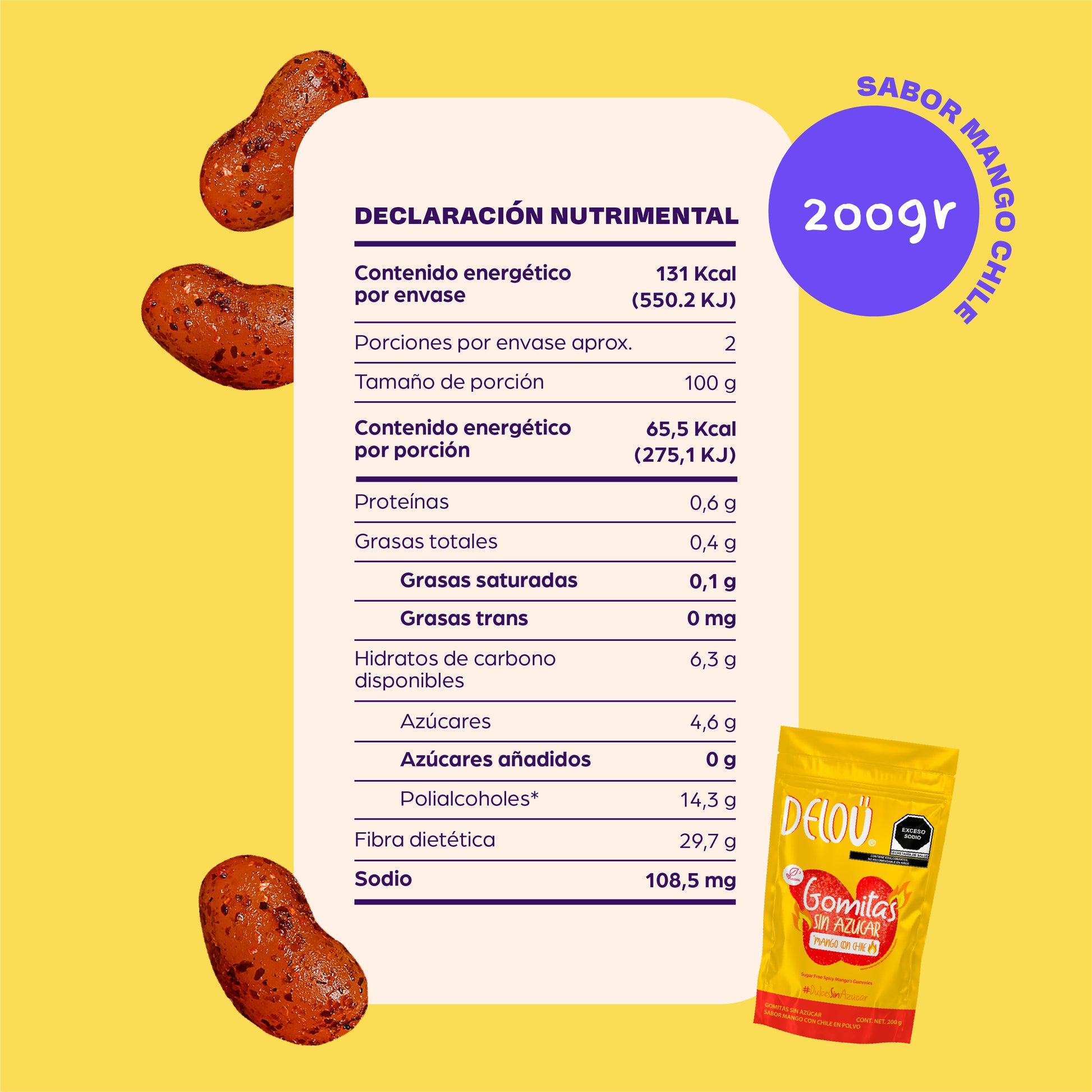En Deloü, nos comprometemos a seleccionar delicias que todos puedan disfrutar. Estos Manguitos Enchilados contienen: